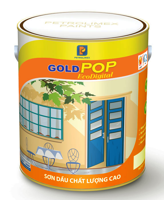 MÔ TẢ | Với thành phần cấu tạo từ nhựa Alkyd và bột màu chất lượng cao, được sản xuất từ nguyên liệu ngoại nhập trên dây chuyền thiết bị kỹ thuật số tự động, công nghệ Châu Âu, sơn dầu chất lượng cao GOLDPOP EcoDigital với màng sơn bóng đẹp, nhẵn mịn, mau khô và dễ sử dụng là sự lựa chọn thích hợp cho việc trang trí và bảo vệ bề mặt gỗ và kim loại. |